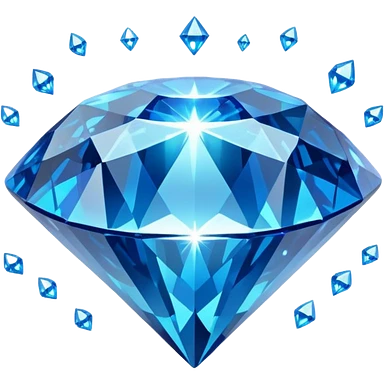 A sparkling blue diamond with a perfect cut, floating in the air. It is surrounded by a light magical glow. A symbol of value and uniqueness. emoji