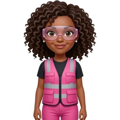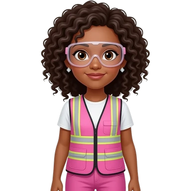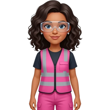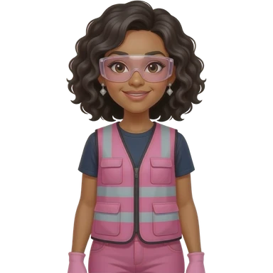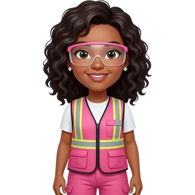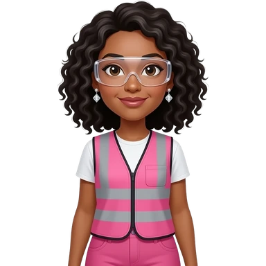 light skin women with shoulder length curly black hair wearing diamond earrings wearing pink and clear safety glasses wearing a pink construction vest wearing pink pants emoji
