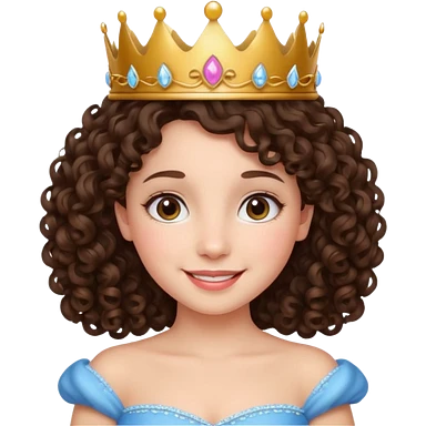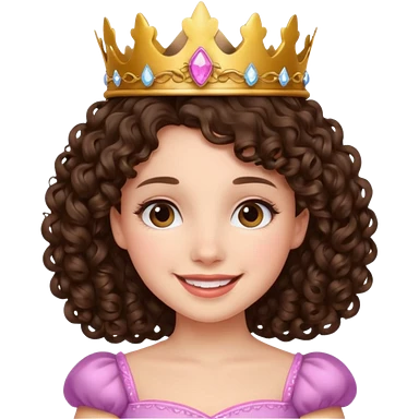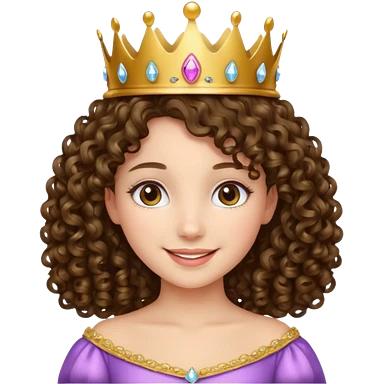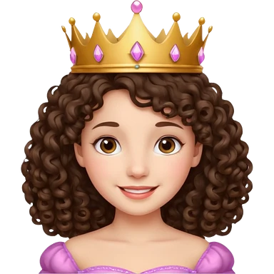A brunette curly hair girl with a princess crown smiling gently. emoji