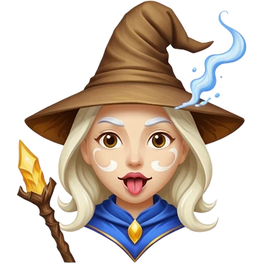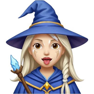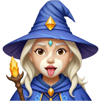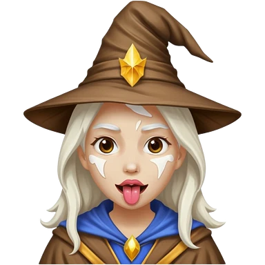 Female wizard with her tongue out and with white paint on her face emoji