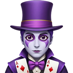 Poker face with purple skin and a magician hat emoji