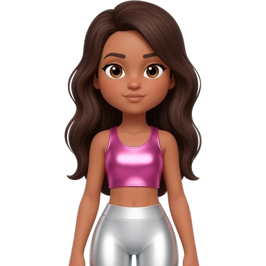 Azzyland with light skin, long dark brown hair, pink metallic crop top, white metallic leggings emoji
