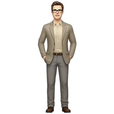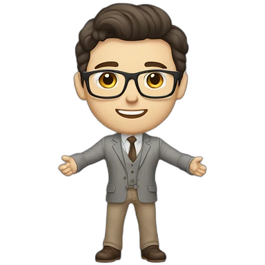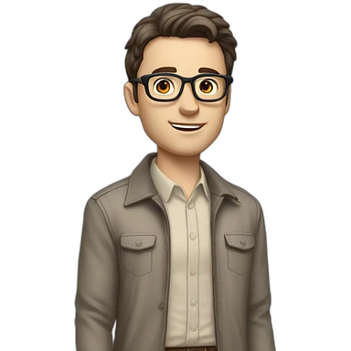 Light-skinned man with short black hair styled upwards, full short graying beard, smiling, wearing large black-framed glasses and a black long-sleeve sports shirt with zip at the neck emoji | AI Emoji Generator
