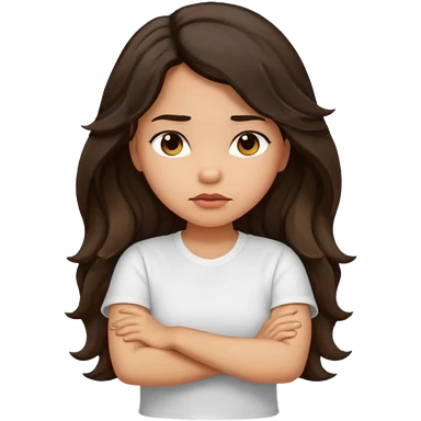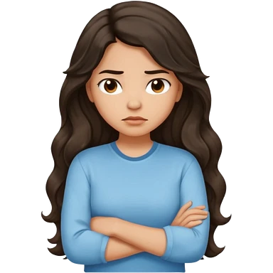 Slightly tan girl dark long wavy hair crossing her arms with slight pout emoji