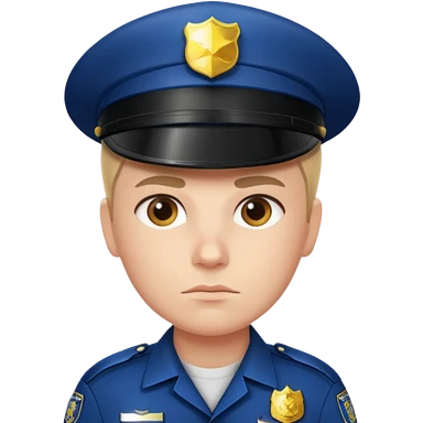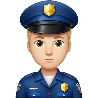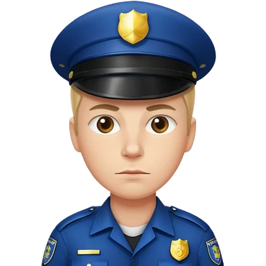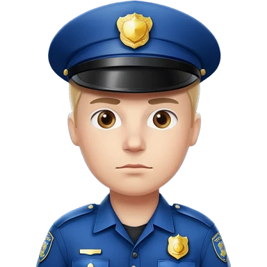 This is a cartoon-style avatar of a police officer with light skin, wearing a dark blue cap featuring a silver badge, and showing a smile expression. emoji