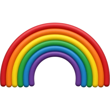 A vibrant, full-color rainbow arch with fluffy white cartoon clouds at both ends. 3D rendered emoji style, glossy finish, clean edges, isolated on a pure white background. Bright and cheerful lighting. emoji