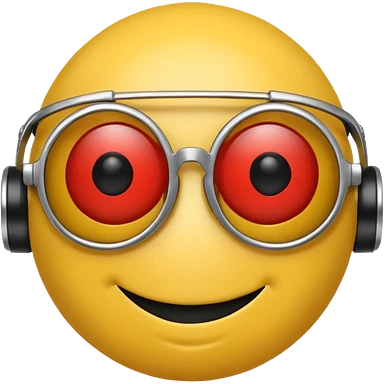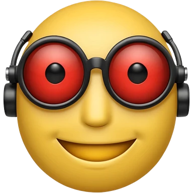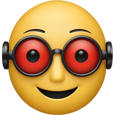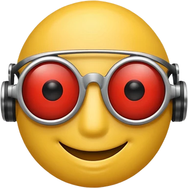 Yellow smiley face head with black sunglasses one of the eyes is a red robot eye emoji