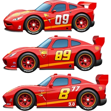 Lightning McQueen 95, red race car, side view, cartoon style emoji