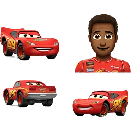 Lightning McQueen 95, red race car, smiling, cartoon style emoji