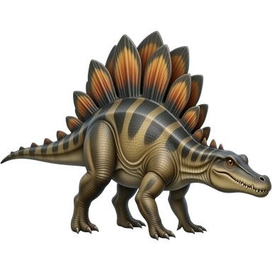Bipedal Spinosaurus with a crocodile snout, long tail and large connected sail all over the spine, no triangular plates emoji