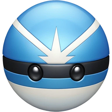 blue pokeball emoji, top half is a more saturated blue, bottom half is white, black stripe, with a white sheen, with a pearlescent finish, with a lightning effect emoji