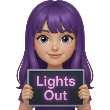 girl with long purple hair with a LIGHTS OUT sign emoji