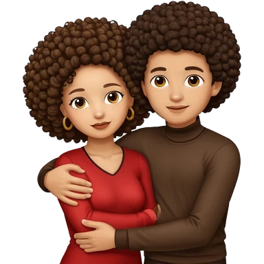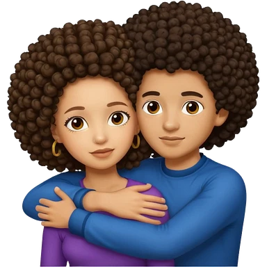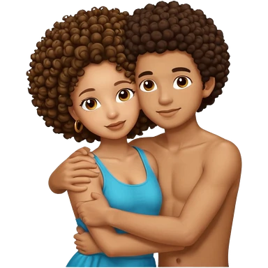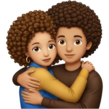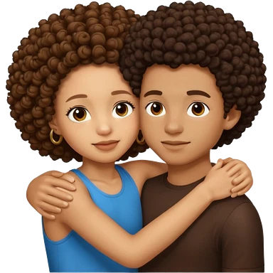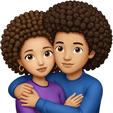 A lightskin with afro boy and brown skin girl with curls hug emoji