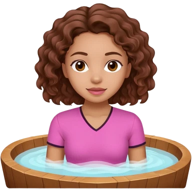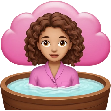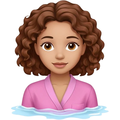 lightskin girl having a spa day with green skincare facemask and cucumbers on her eyes and brown curly hair and a pink shirt emoji | AI Emoji Generator