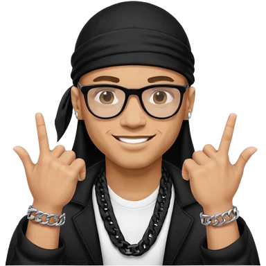 lightskin man with a black durag,a cuban link chain,glasses, and flexing grillz emoji | AI Emoji Generator