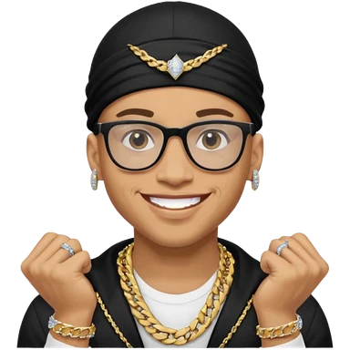 lightskin man with a black durag,a cuban link chain,glasses, and smiling flexing diamond studded teeth emoji