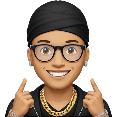 man with black durag,glasses, and smiley with diamond grillz emoji