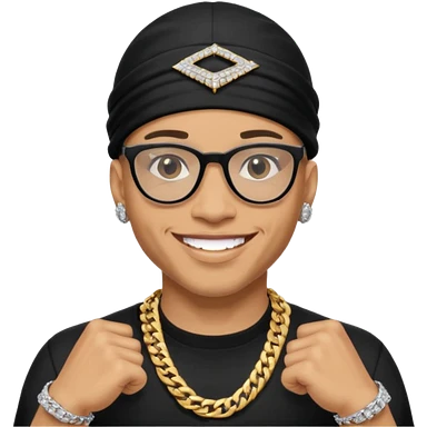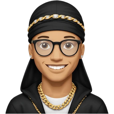 lightskin man with a black durag,a cuban link chain,glasses, and smiley diamond grillz emoji