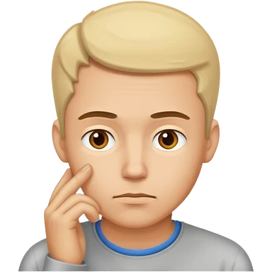 "A three-dimensional spherical face in light purple with a shiny effect, showing a thoughtful or hesitant expression. Its eyebrows are slightly tilted, and its eyes are half-closed, giving a puzzled look. The mouth is slightly curved to one side. One of its hands, in gold color, raises the index finger to touch the chin in a thinking pose. The background is black with a soft glow around the face to add a modern effect." emoji
