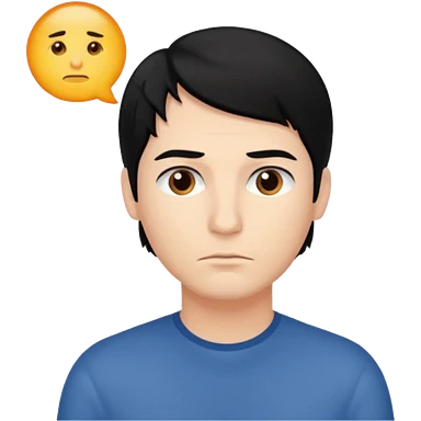 A brunnete haired girl with light skin and brown eyes and Korean soft makeup with a thinking bubble emoji