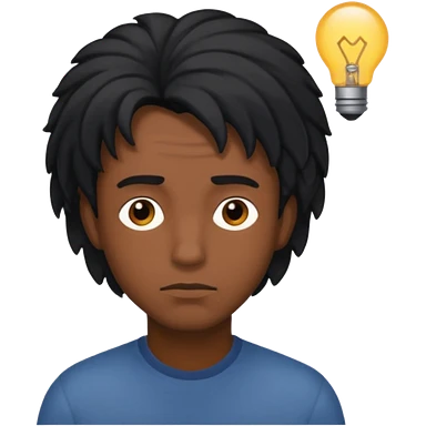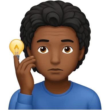 A pensive black man in glasses thinking with a light bulb above his bald head and goatee. emoji