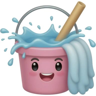 MOP AND BUCKET CUTE AND HAPPY PINK WATER SPLASHING AND BUBBLES emoji