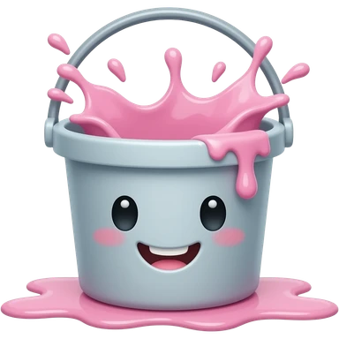 A PINK BUCKET WITH A MOP AND SPLASHING WATER AND BUBBLES CUTE AND HAPPY emoji