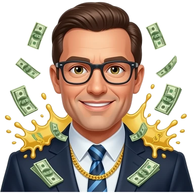 create an emoji of a billionaire splashing money on a person emoji
