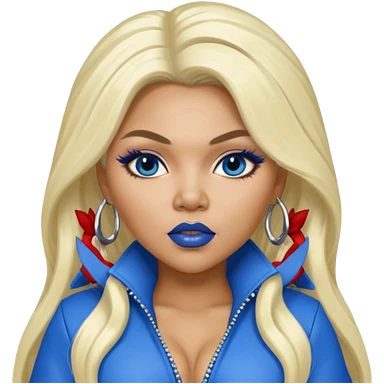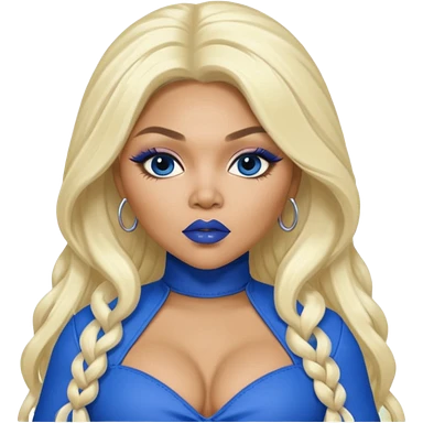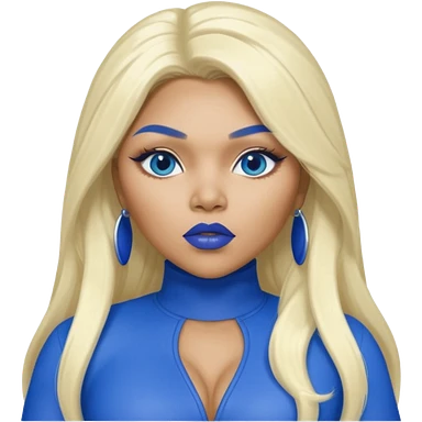 Lil Kim with long platinum blonde hair, blue lip and outfit emoji