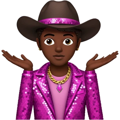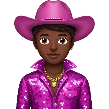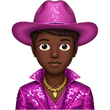 Lil Nas X with dark brown hair, dark pink sequin outfit emoji