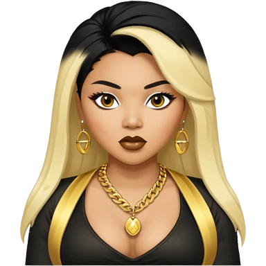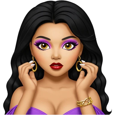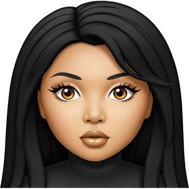 a hispanic girl with long black straight hair with red blush cheeks and mid eyelashes and a lil tan emoji