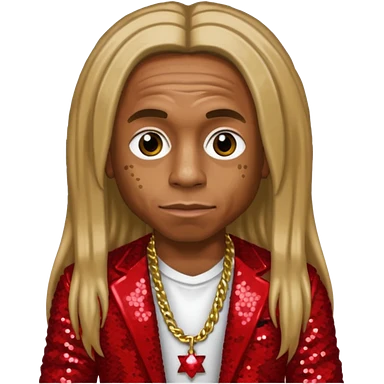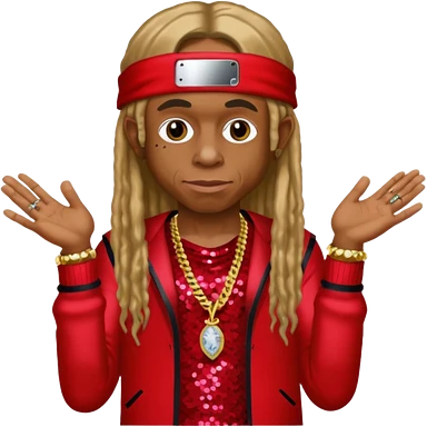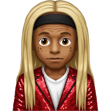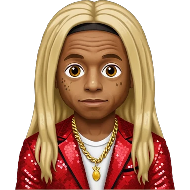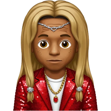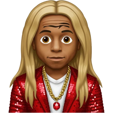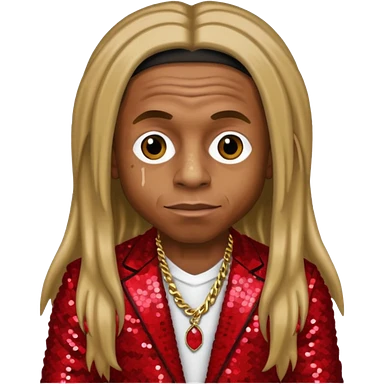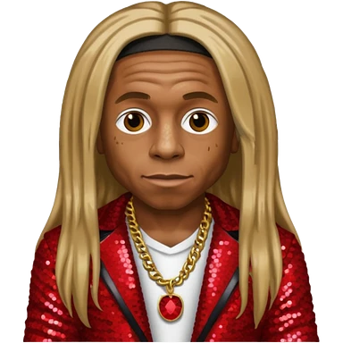 Lil Wayne with long dark blonde hair, red sequin outfit emoji