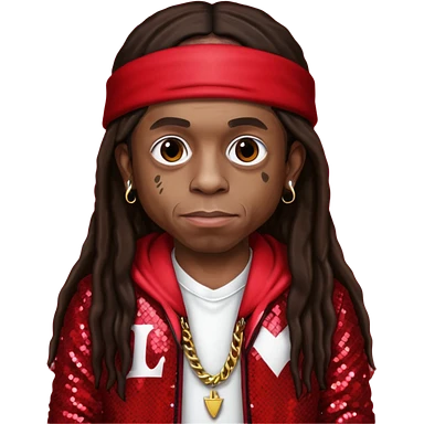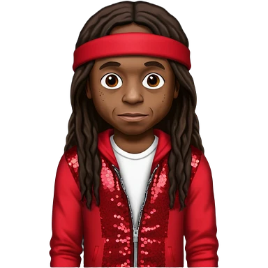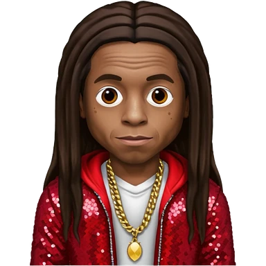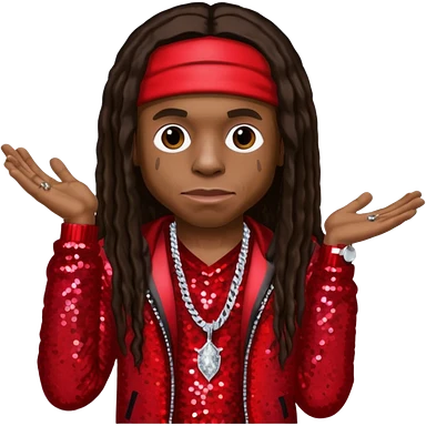 Lil Wayne with long dark brown hair, red sequin outfit emoji