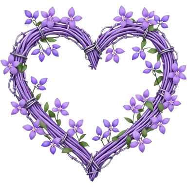 heart shape made out of barb wire vines with pastel lavenders and lilacs adorning the border with crystals hanging emoji