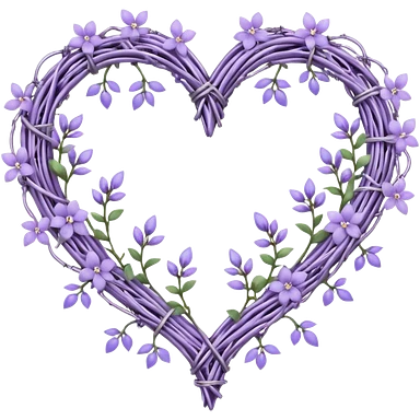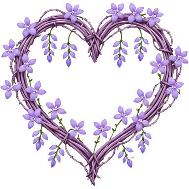 Pastel purple heart shape made out of barb wire vines with lavenders and lilacs adorning the border with crystals hanging emoji