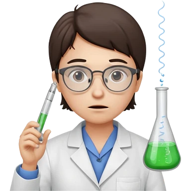 Frowns with Glasses, Disappointed Scientist: Lab coat, thin glasses, holding test tube, upset expression emoji