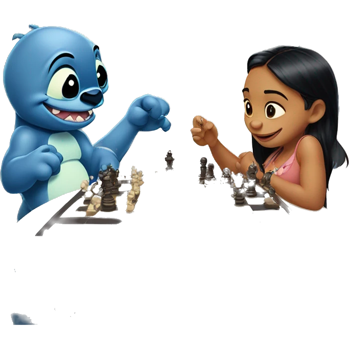 Lilo and Stitch playing chess from cartoon Lilo & Stitch emoji