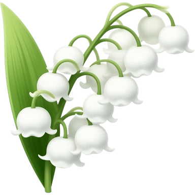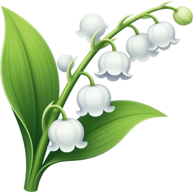 Elegant lily of the valley flower with delicate white bell-shaped blooms hanging from green stem and bright green leaves emoji