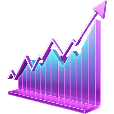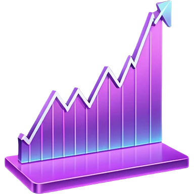 iOS-style 3D emoji: a glossy green arrow curving upward, attached to a jagged rising line chart, with smooth gradients and soft shadow emoji