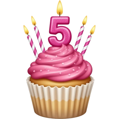 cupcake with pink frosting and a sparkly 5 candle emoji