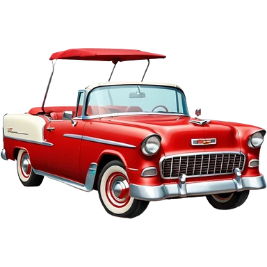 1955 Chevrolet Bel Air Convertible, Red-White color, with a bucket of brown mud pouring down on it. 32x32 pixels, aspect ratio: 1:1 emoji