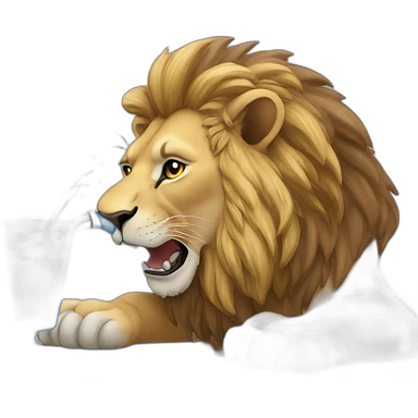Lion drinking boba tea wearing a Nike tech and jordans emoji