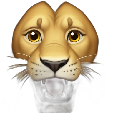 Lion blanc aux yeux bleus avec une tâche marron sur le côté droit du visage emoji