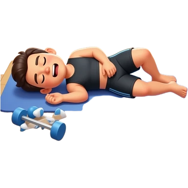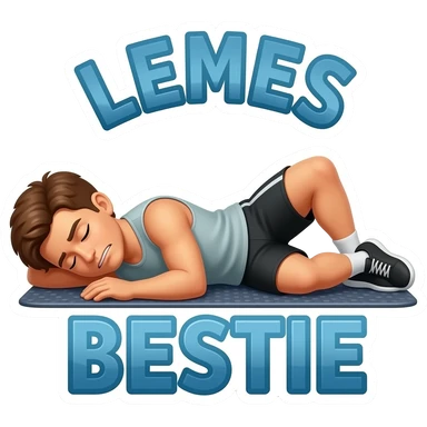 : "A funny sticker of a person lying exhausted on a gym floor after leg day, 'LEMES BESTIE' text, cartoon style, bold lines, white border." emoji