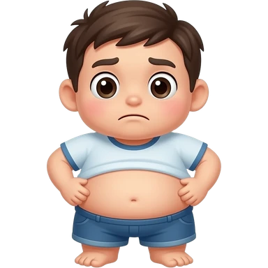 A funny sticker of a cute character pinching their belly fat with a confused face, white border, flat cartoon style, vibrant colors. emoji