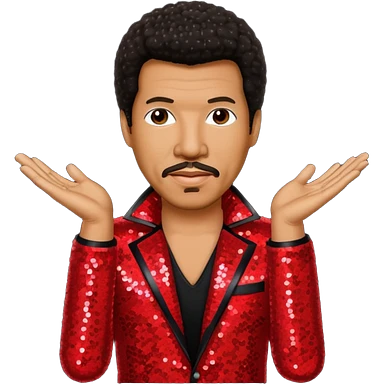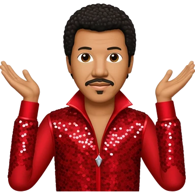 Lionel Richie with dark brown hair, red sequin outfit emoji