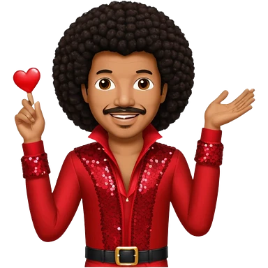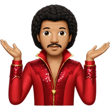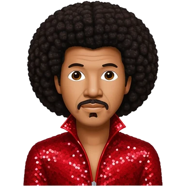 Lionel Richie with long dark brown afro hair, red sequin outfit emoji