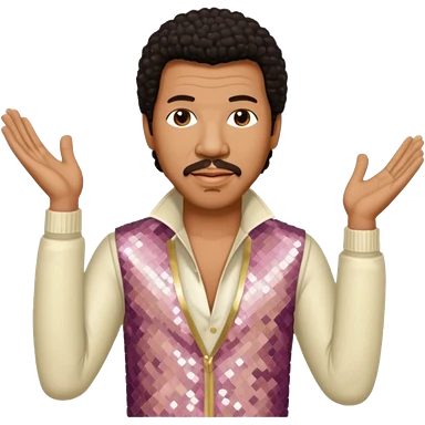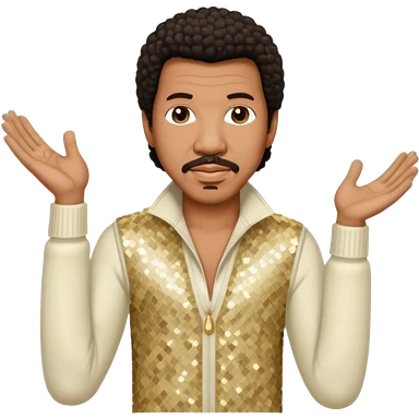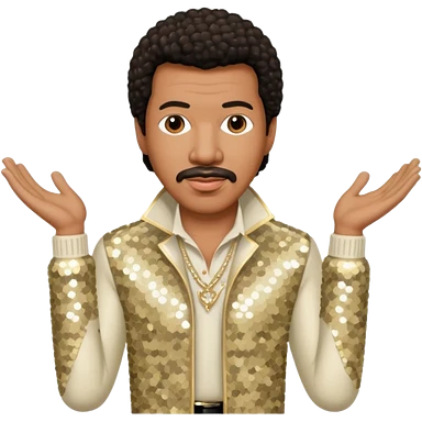 Lionel Richie with dark brown hair, cream sequin outfit emoji