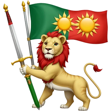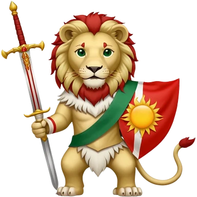 single emoji featuring a lion in the center, flanked by green, white, and red squares, with a sun above emoji