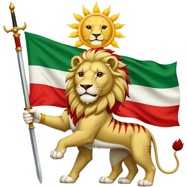 The flag of Iran is green at the top, white in the middle, and red at the bottom, with the symbol of the lion and the sun in the middle. The lion is looking at the robot and has a sword in his right hand, and the sun is behind the lion. emoji